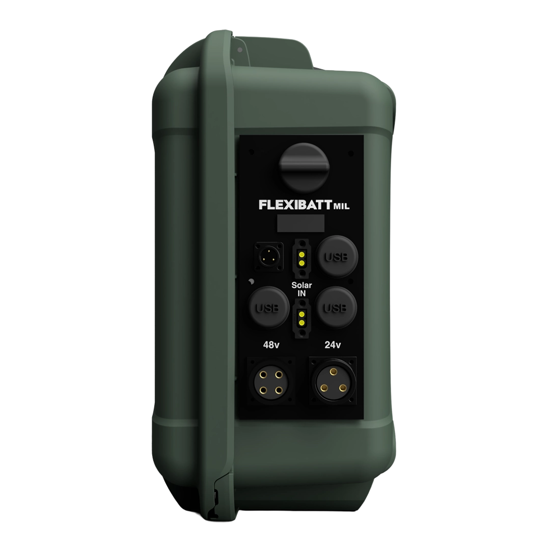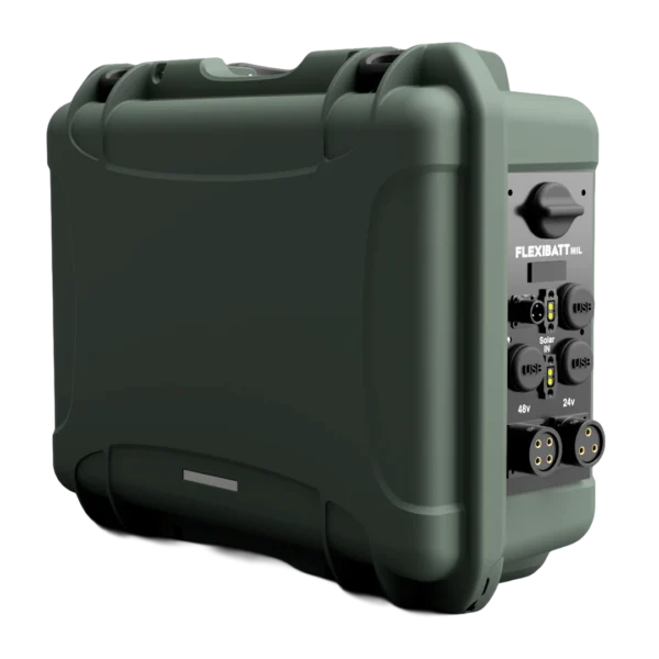 Flexibatt PRO MIL-SPEC er utviklet for operasjoner hvor DC-strøm er den primære energiplattformen. Systemet leverer 48V høystrømsutgang på opptil 2200W samt 24V-utgang på 480W, og er konstruert for sømløs integrasjon mot sensorer, kommunikasjonssystemer, kjøretøyplattformer og annet oppdragskritisk utstyr.